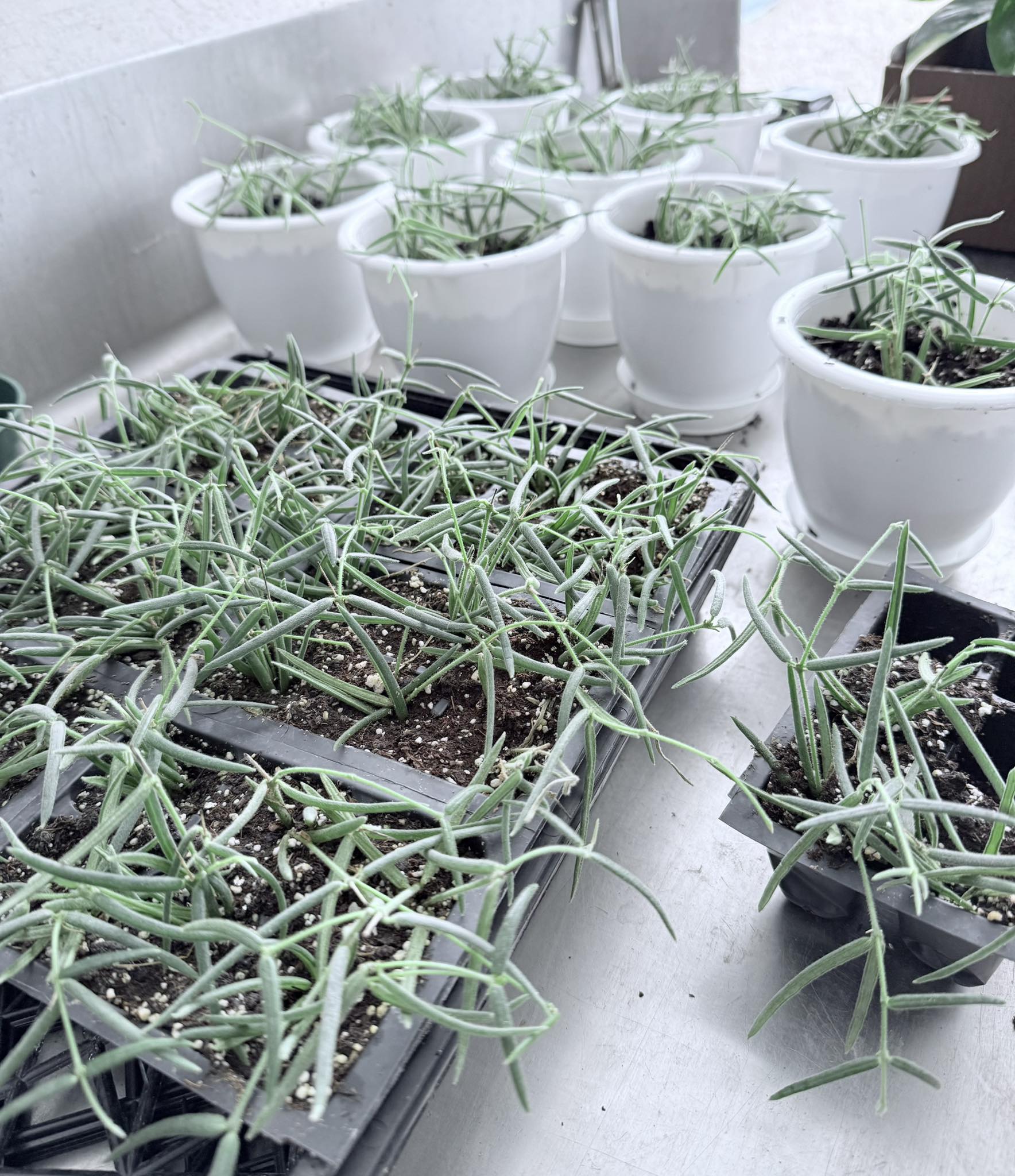 Walking into The Succulent Garden feels like stepping into a cozy, plant-filled oasis. Visitors can expect everything from petite desk-friendly succulents to lush statement tropicals, along with unique planters, soils, and gardening supplies. The shop even carries bohemian-inspired gifts and décor, making it a one-stop destination for plant lovers and gift-seekers alike. Some of the most popular plants include classic succulents like Echeveria and Haworthia as well as tropical foliage such as Monstera and Philodendron. Their custom soil mixes and unique planters are also customer favorites. For those who love something extra special, Kim highlights rare finds like variegated Monstera, Alocasia, Aeoniums, and even a Corpse Plant that often surprises visitors. Behind the scenes, Kim and J.P. are growing more and more of their plants themselves at their Grow House. It is hands-on, meticulous work, but as Kim says, “seeing the plants we grew become a customer’s favorite is so rewarding.”