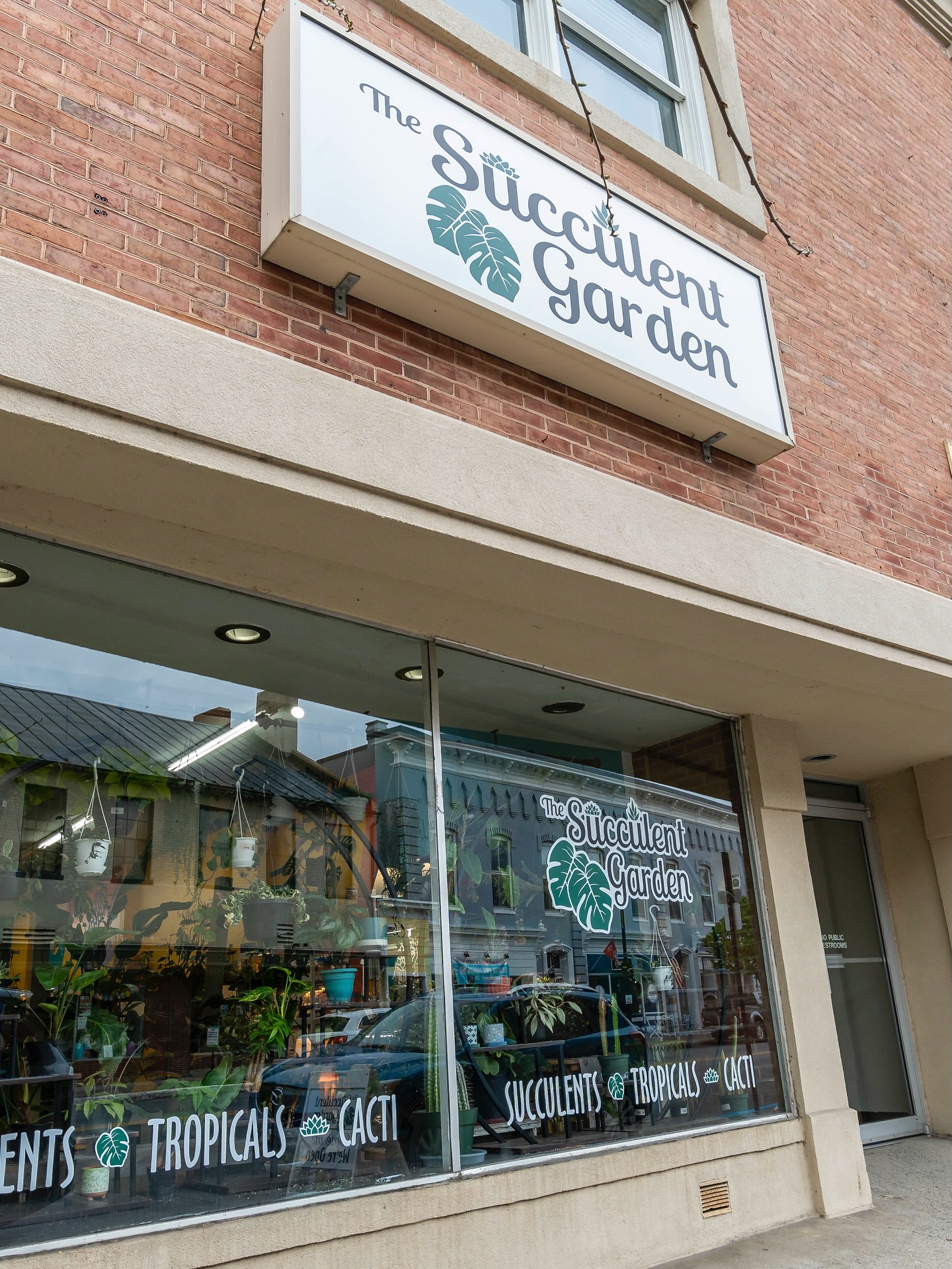 Kim’s love for plants began in an unexpected place—the Middle East—where she and J.P. spent time gardening outdoors, determined to add a splash of color to their home. When they eventually settled in Charles Town, J.P. surprised Kim with a basement greenhouse and about 100 succulents. To her delight, she kept them all alive, and from there, her passion only grew. With too many plants to keep at home, Kim decided to start selling as a vendor at Needful Things Emporium in March 2021. The community’s response was overwhelming, and soon after, The Succulent Garden blossomed into a full storefront in September 2022. Just a year later, in November 2023, they expanded again to their current location at 120 W. Washington Street, complete with a commercial Grow House. “It’s been an amazing journey turning our home hobby into a thriving small business,” Kim shares.